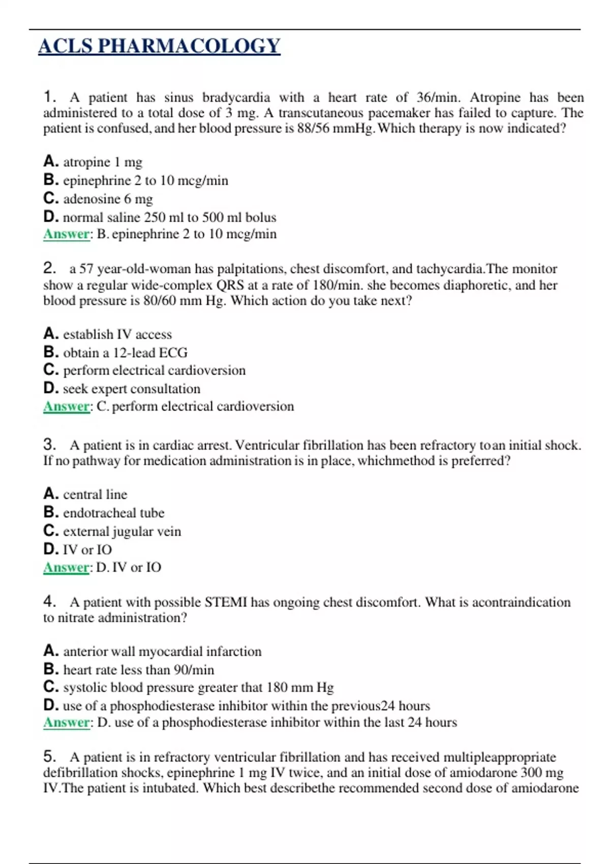 5. A patient is in refractory ventricular fibrillation and has received multipleappropriate