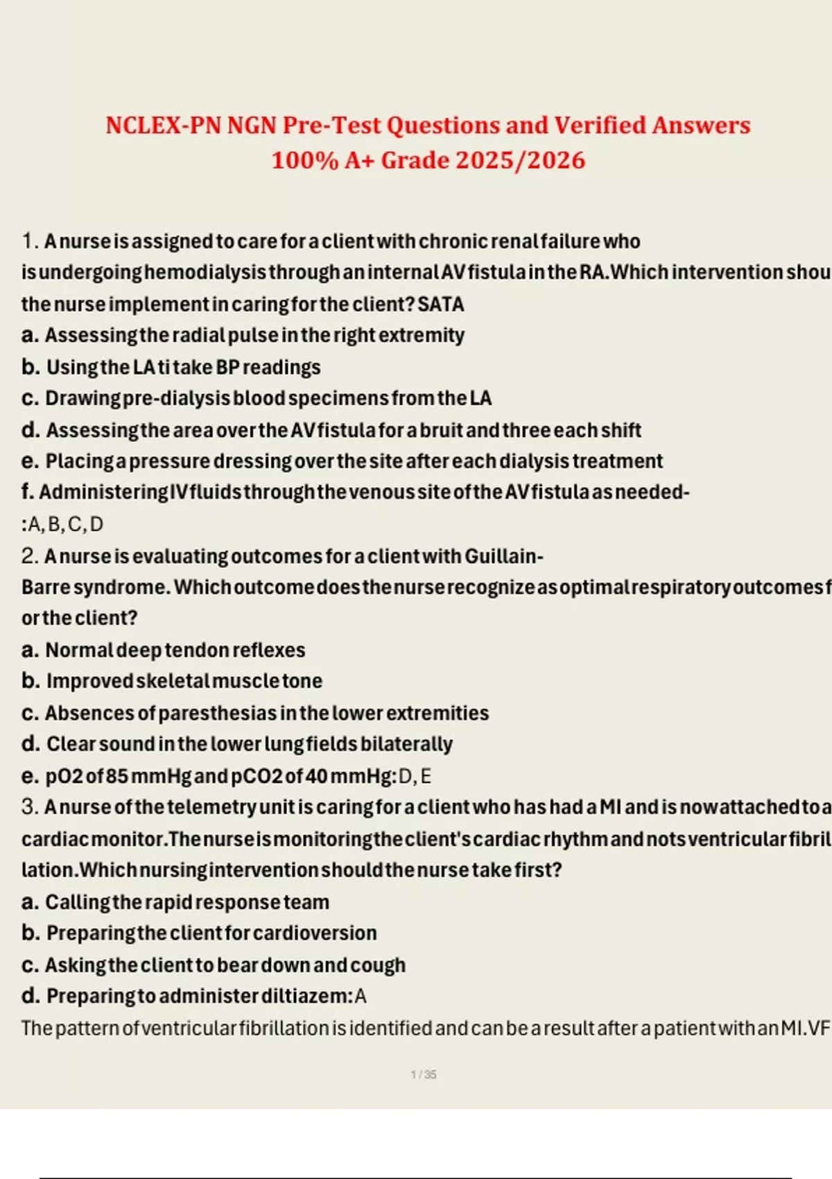 2. A nurse is evaluating outcomes for a client with Guillain-