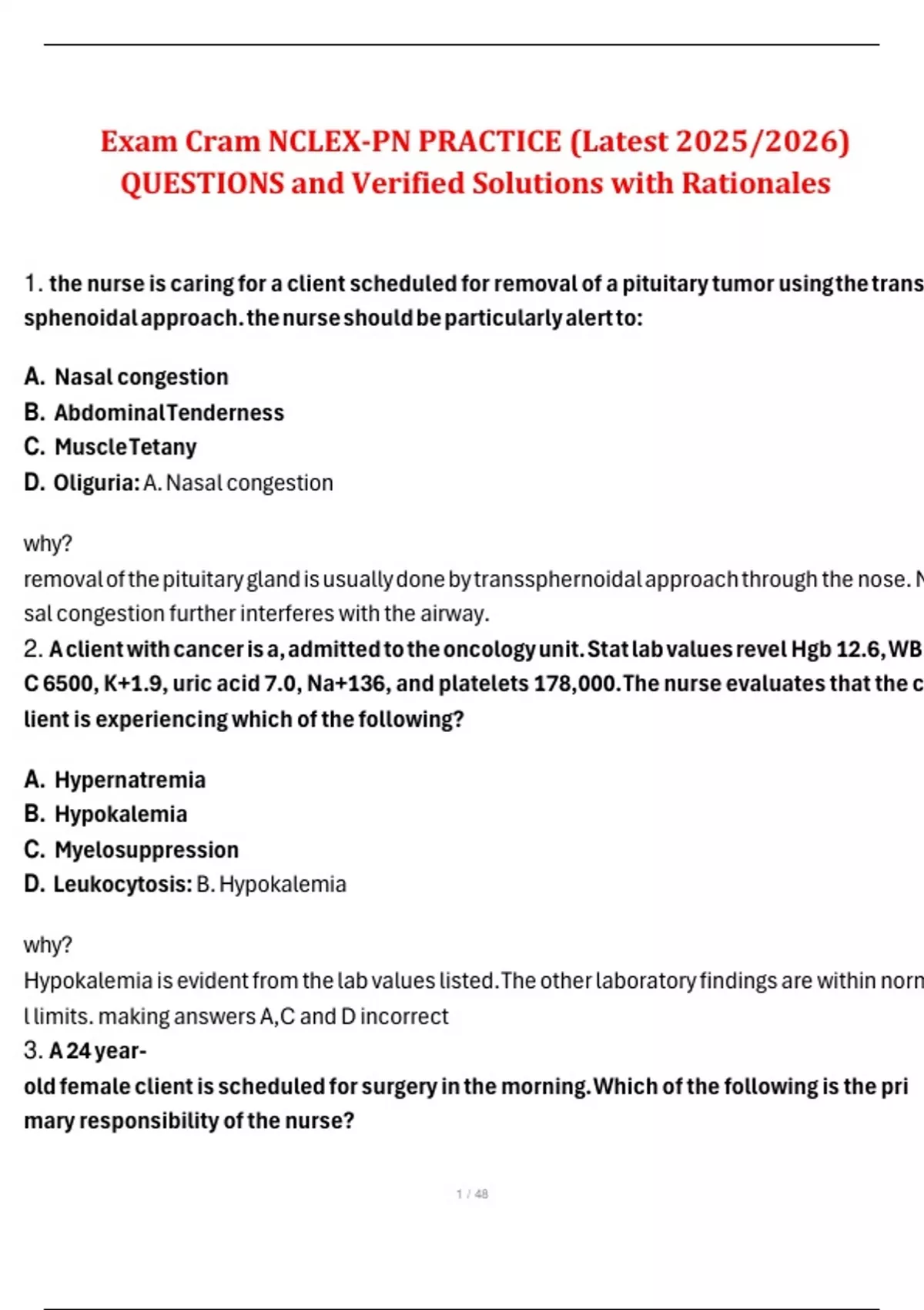 1. the nurse is caring for a client scheduled for removal of a pituitary tumor using the trans