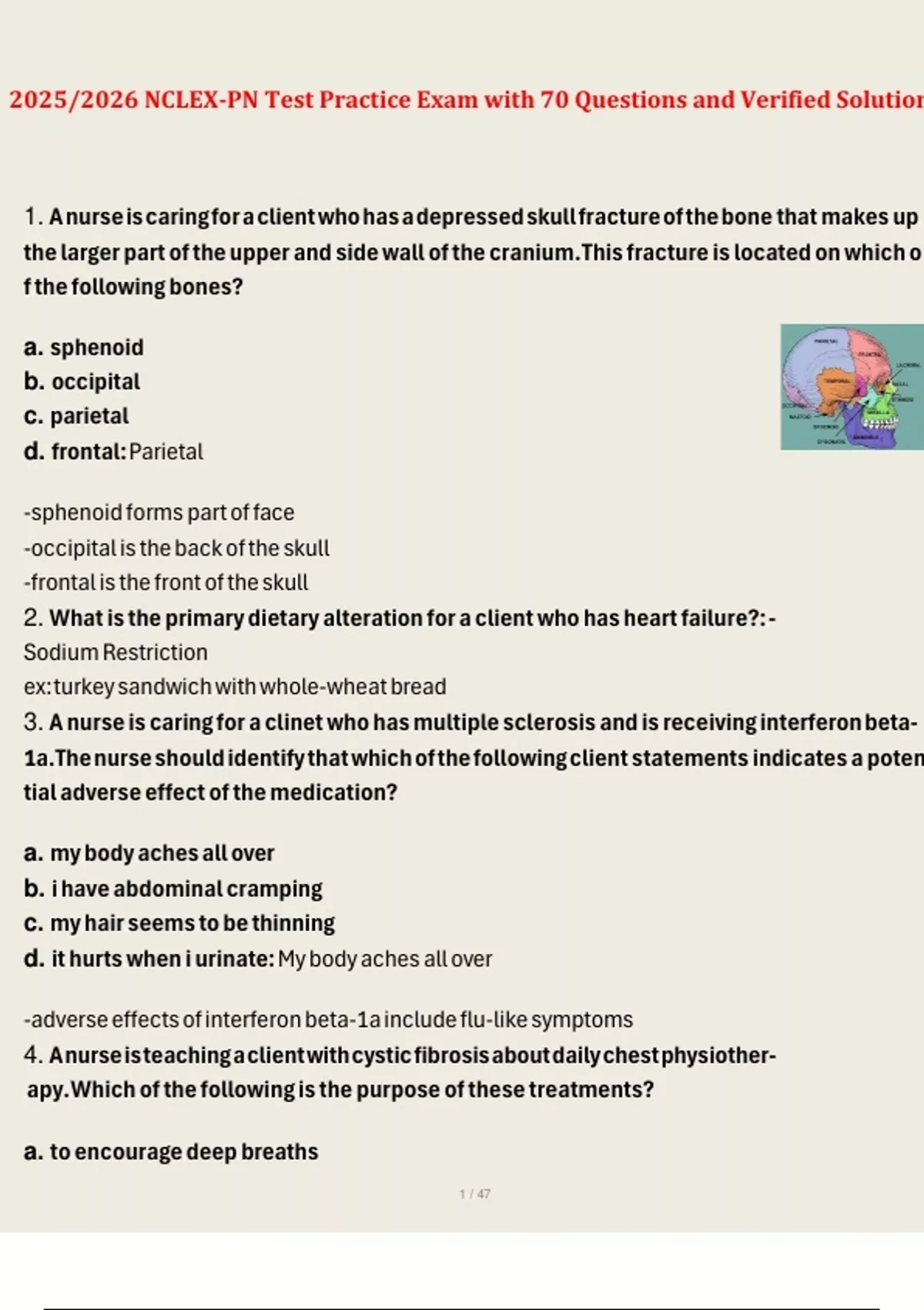 1. A nurse is caring for a client who has a depressed skull fracture of the bone that makes up