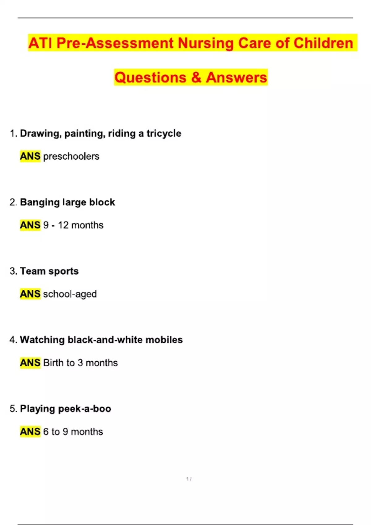ATI Capstone Pre Assessment Nursing Care of Child Exam (2025 / 2026 Update) Questions and Verified Answers | 100% Correct | Grade A