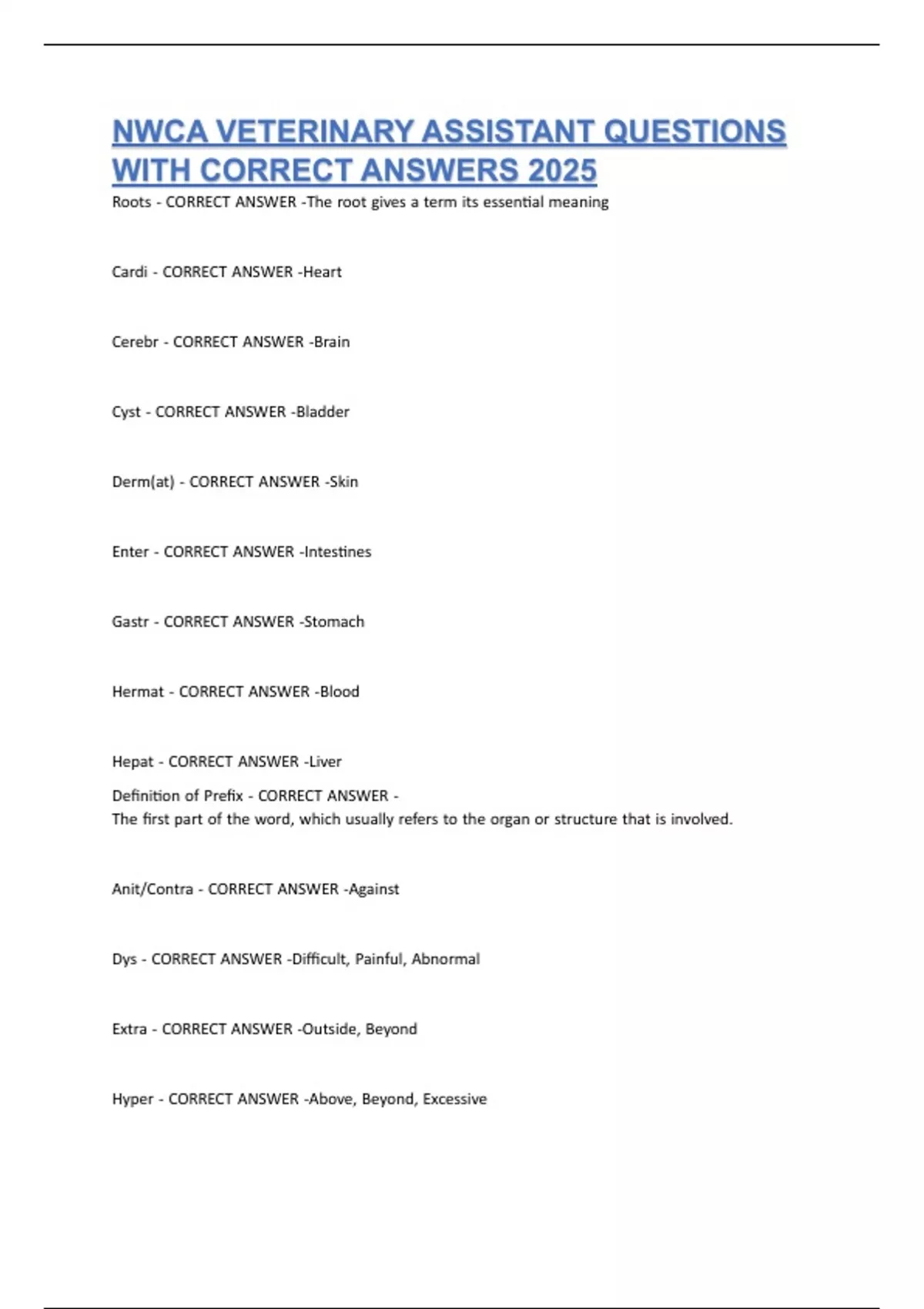 NWCA VETERINARY ASSISTANT QUESTIONS WITH CORRECT ANSWERS 2025