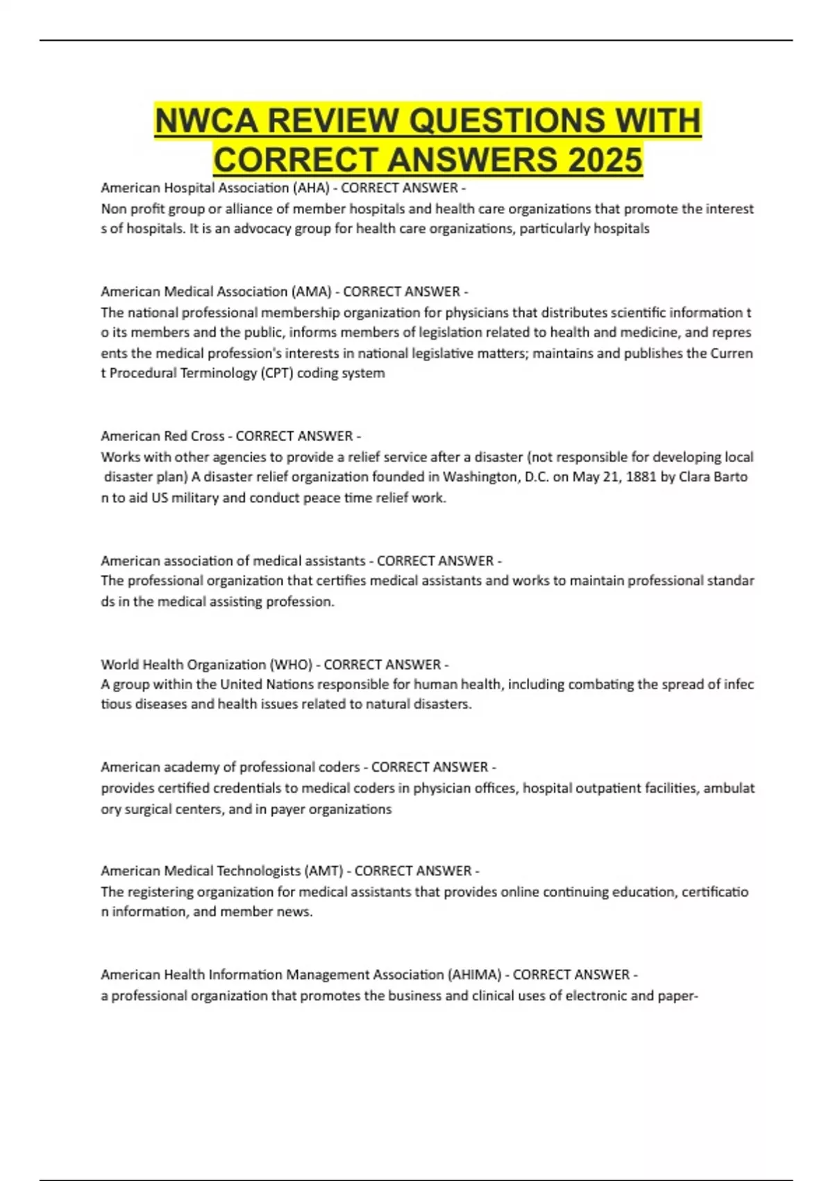 NWCA REVIEW QUESTIONS WITH CORRECT ANSWERS 2025