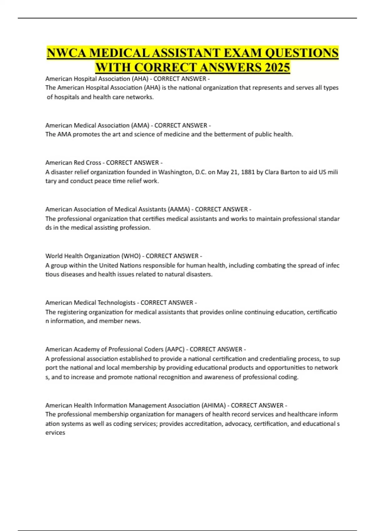 NWCA MEDICAL ASSISTANT EXAM QUESTIONS