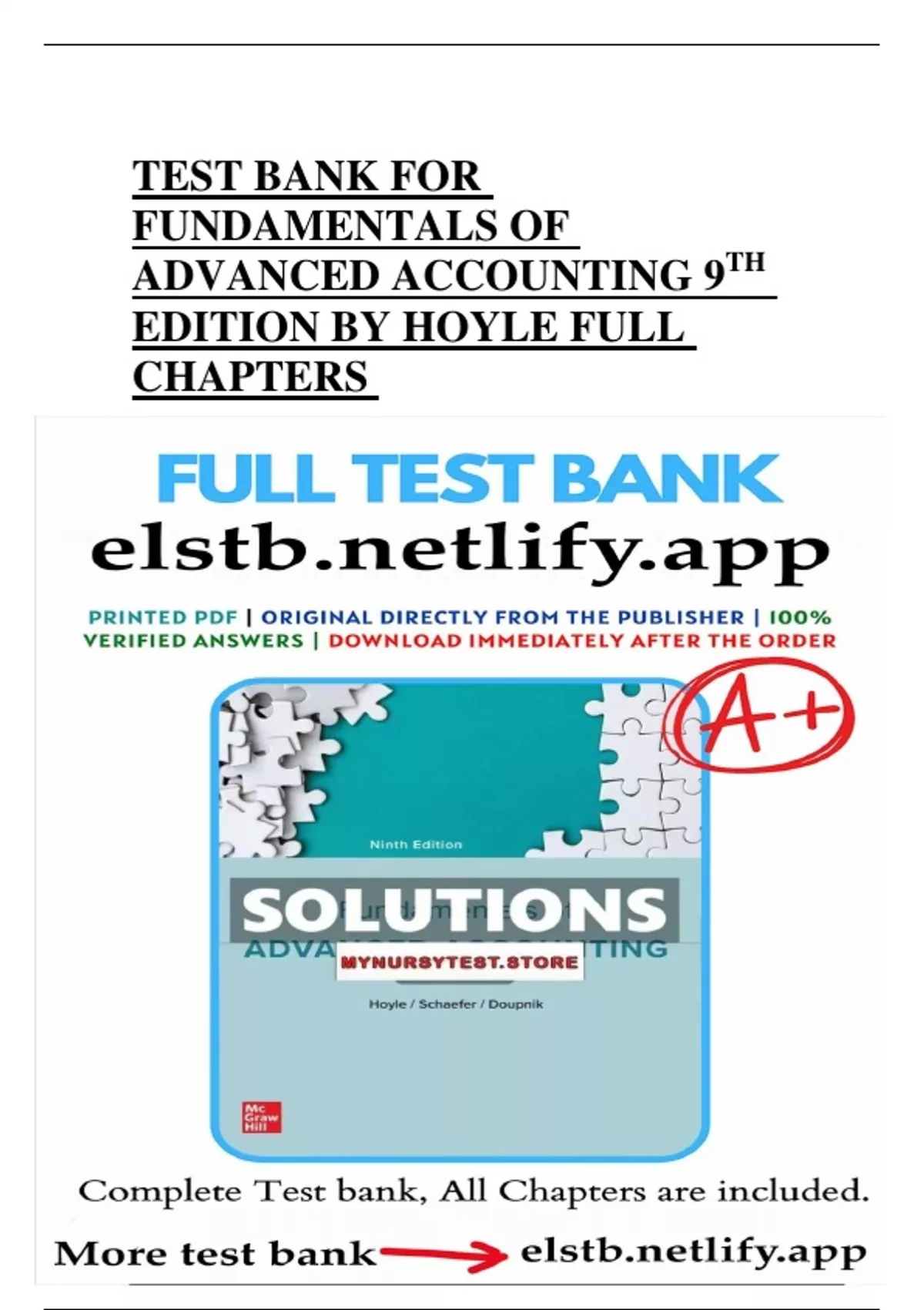 , ACCESS Test Bank for Fundamentals of Advanced Accounting 9th Edition Hoyle