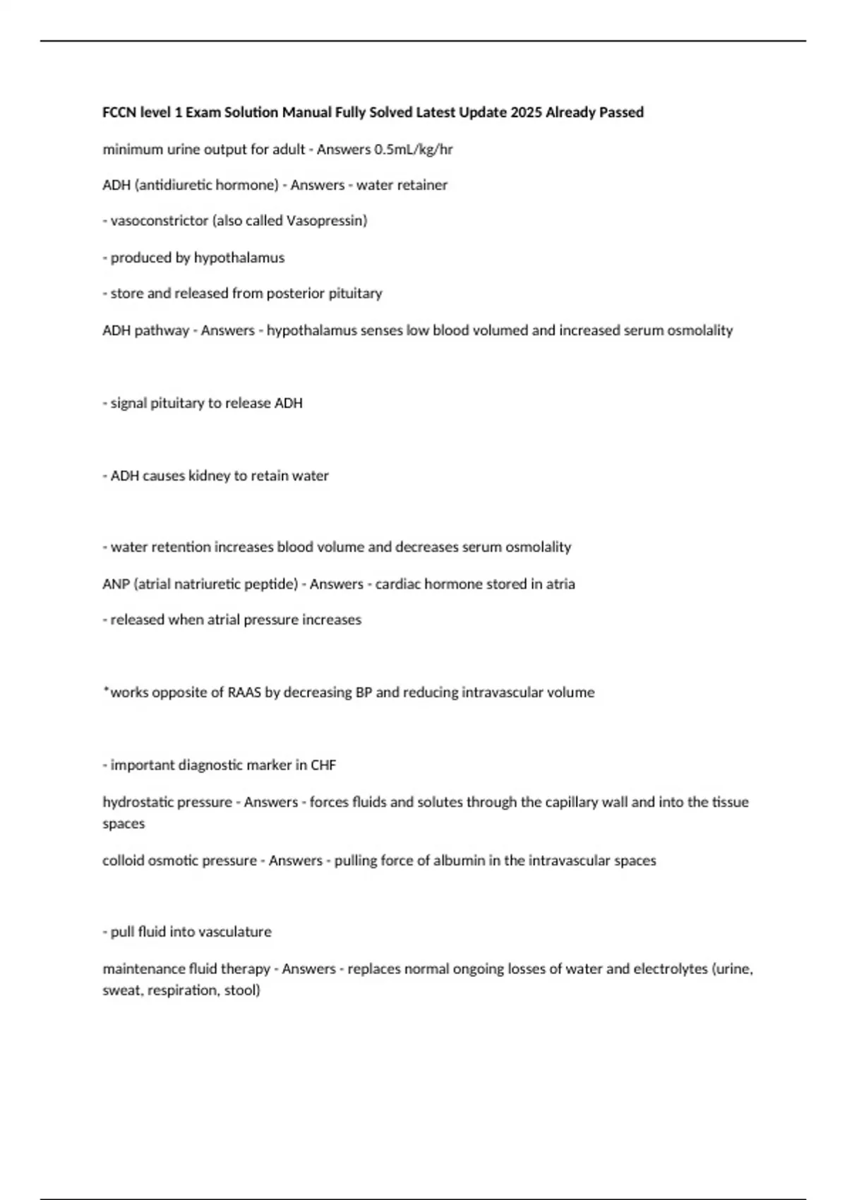 ADH pathway - Answers - hypothalamus senses low blood volumed and increased serum osmolality