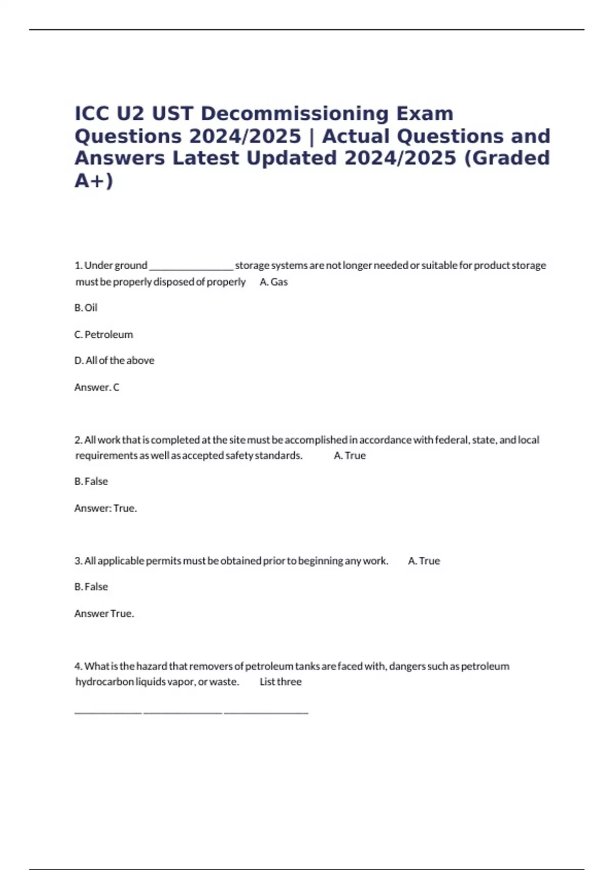 ICC U2 UST Decommissioning Exam