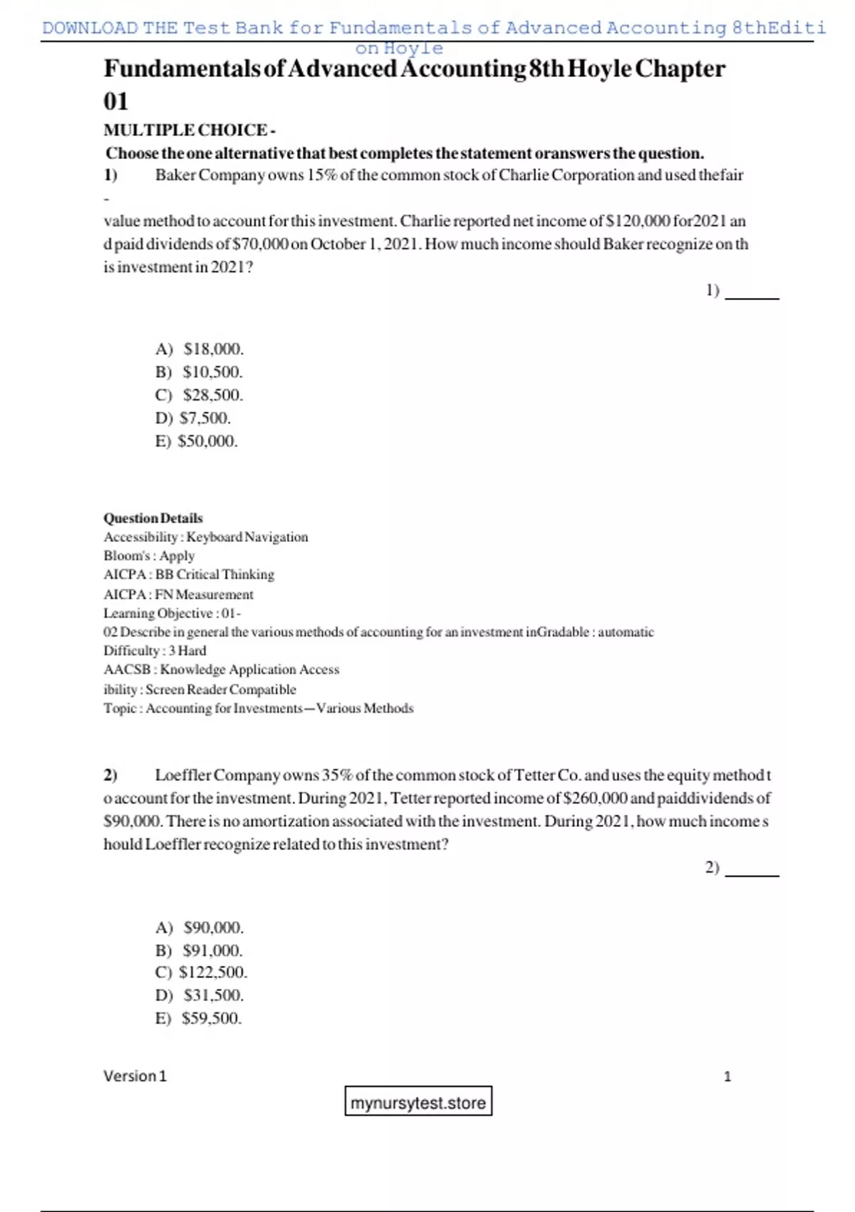 DOWNLOAD THE Test Bank for Fundamentals of Advanced Accounting 8thEditi