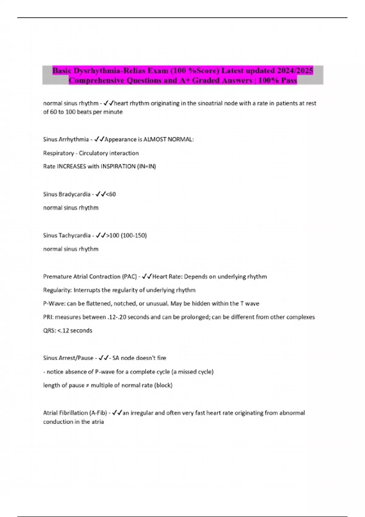 Basic Dysrhythmia-Relias Exam (100 %Score) Latest updated 2024/2025 Comprehensive Questions and Answers