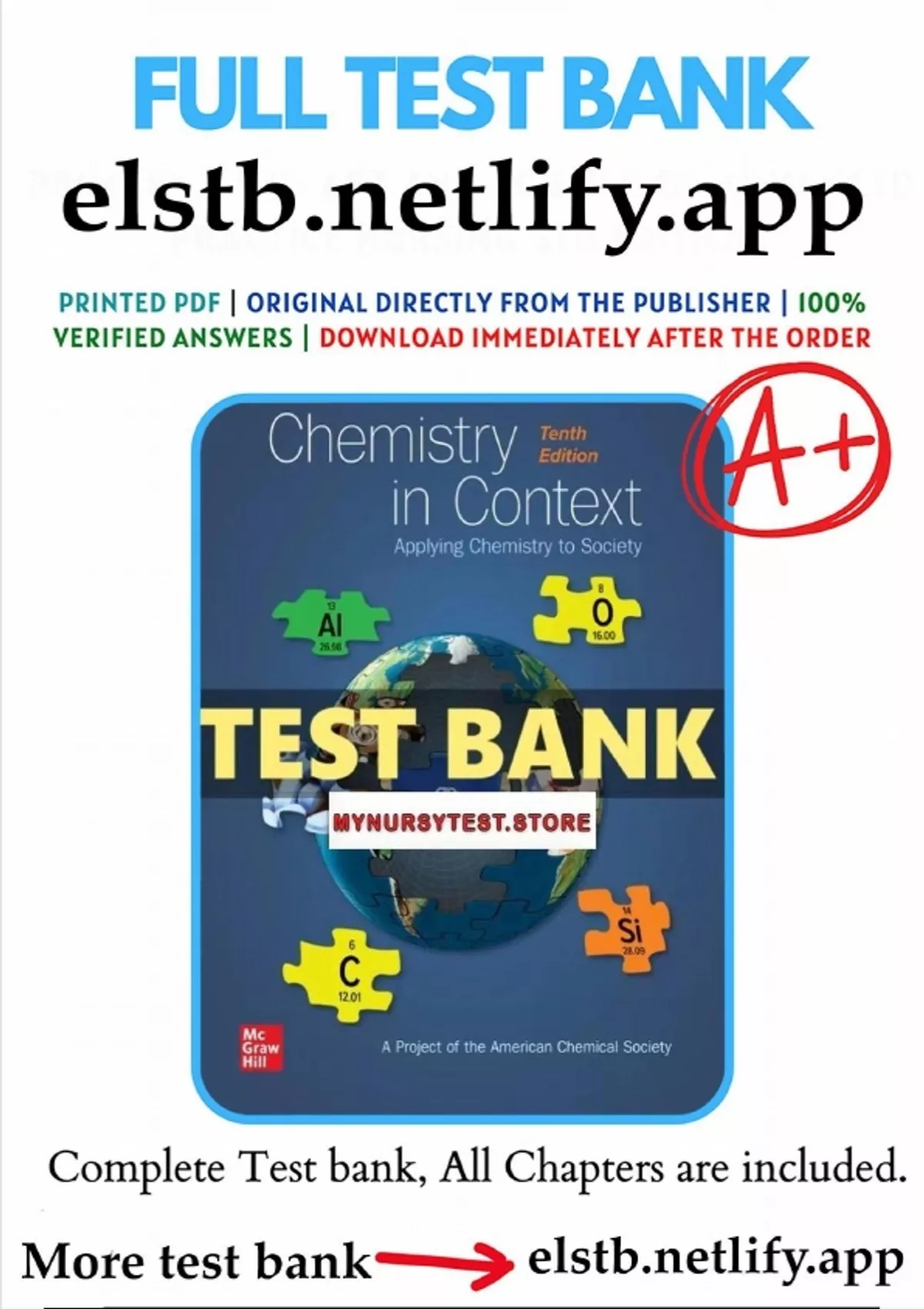 , DOWNLOAD THE Test Bank for Chemistry in Context 10th Edition AmericanChemic