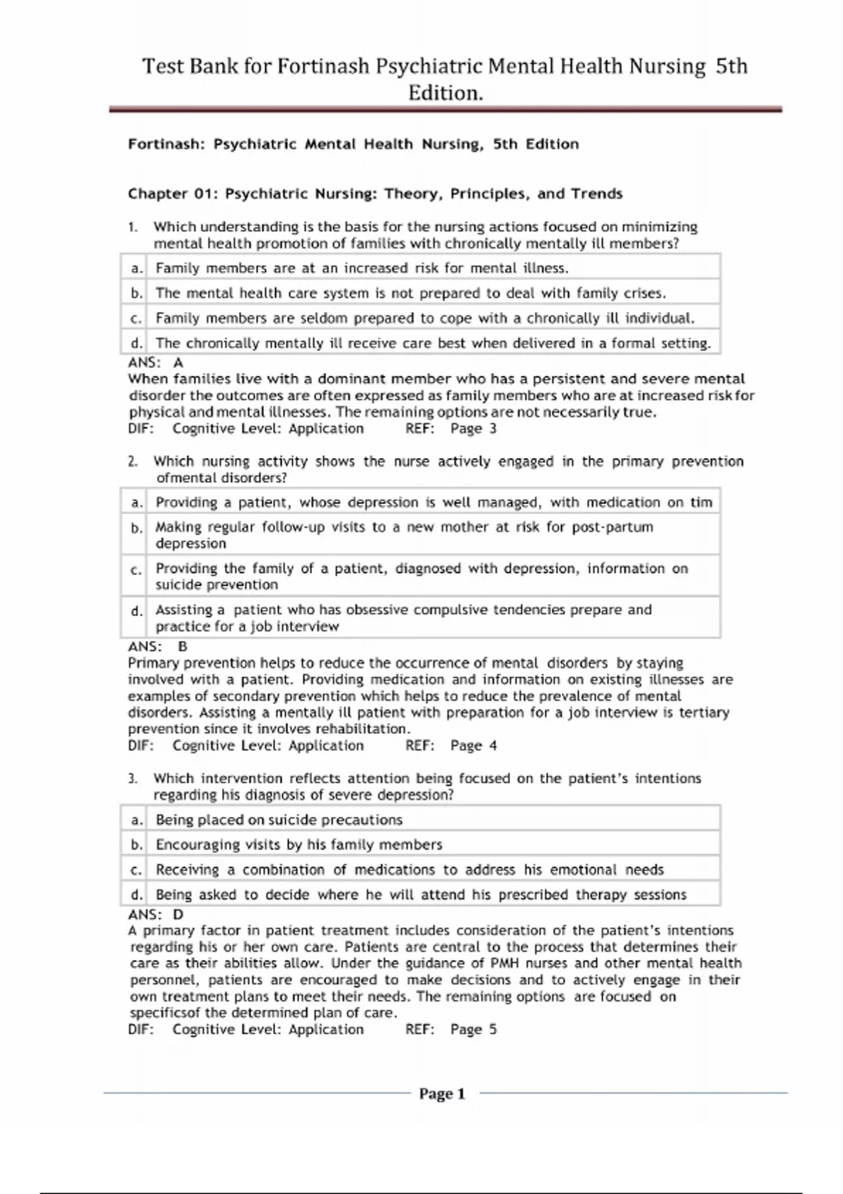 Test bank for fortinash psychiatric mental health nursing 5th edition