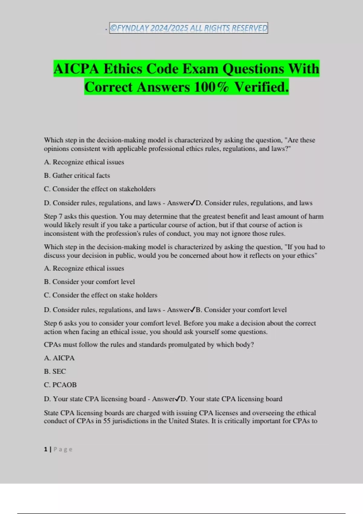 D. Consider rules, regulations, and laws - Answer✔D. Consider rules, regulations, and laws