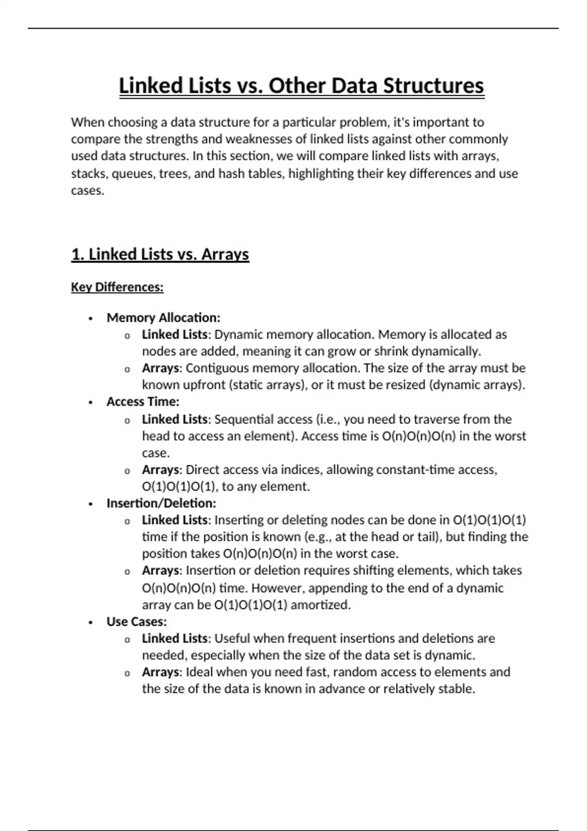 o Linked Lists: A general-purpose data structure, allowing insertion and