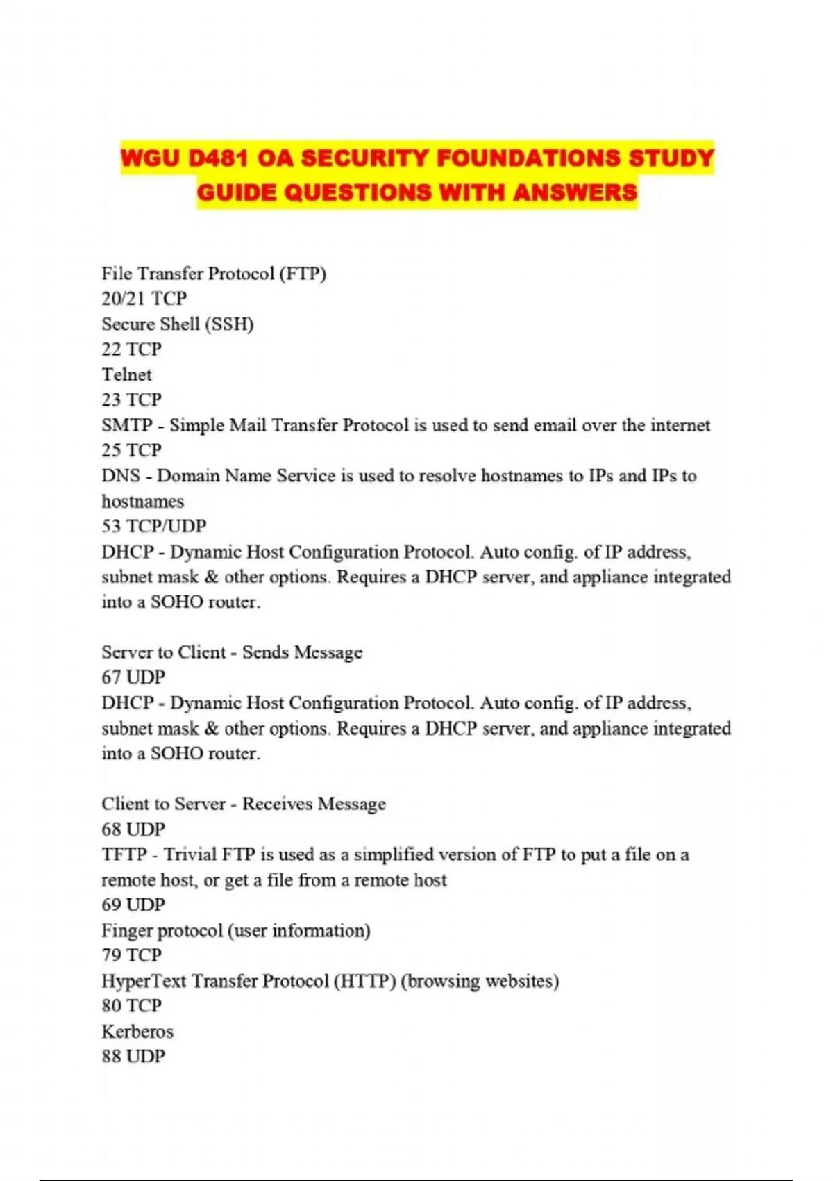 WGU D481 OA SECURITY FOUNDATIONS STUDY GUIDE QUESTIONS WITH ANSWERS