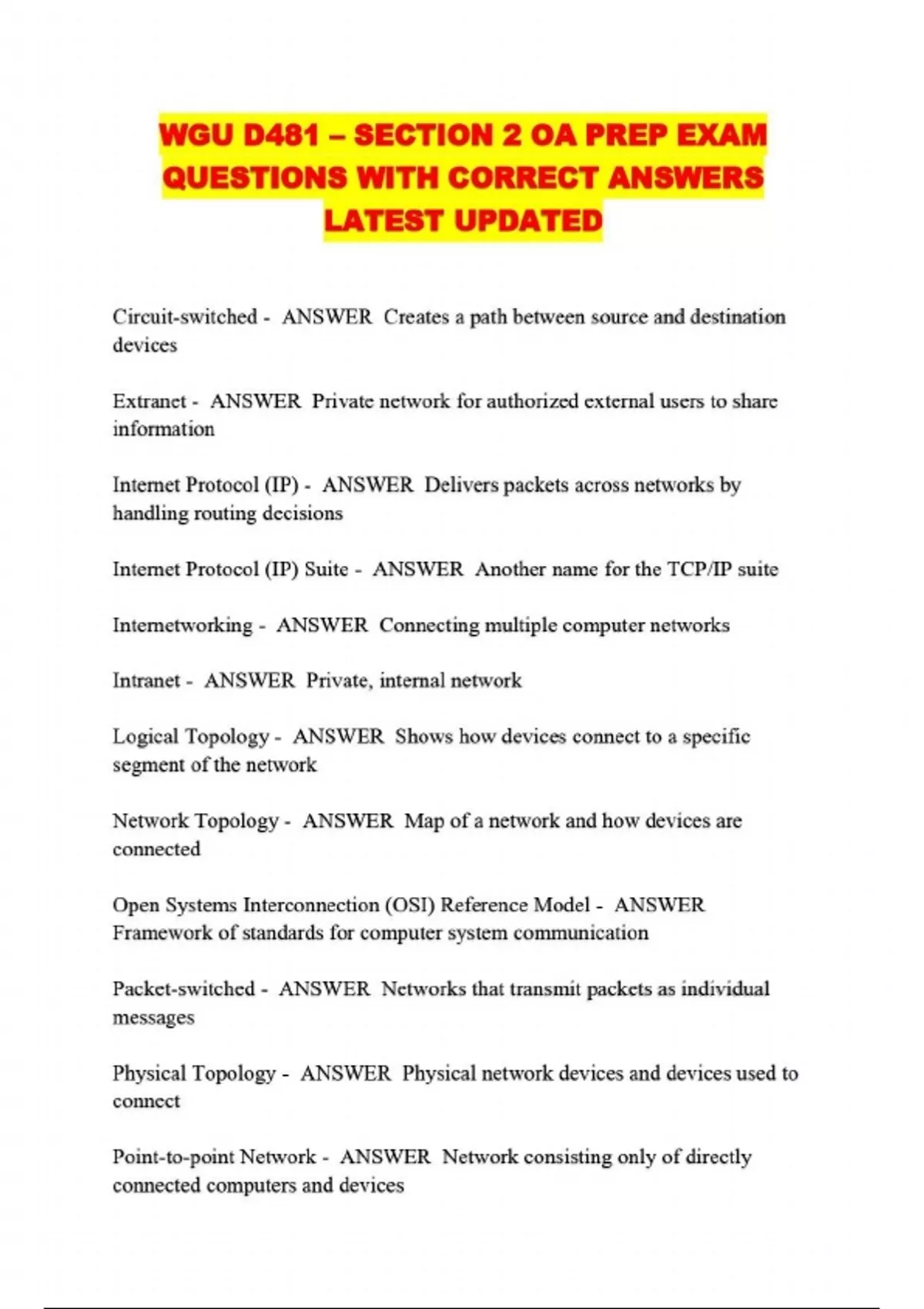 ALL WGU D481 /WGUD481 PACKAGED EXAMS NEW UPDATED