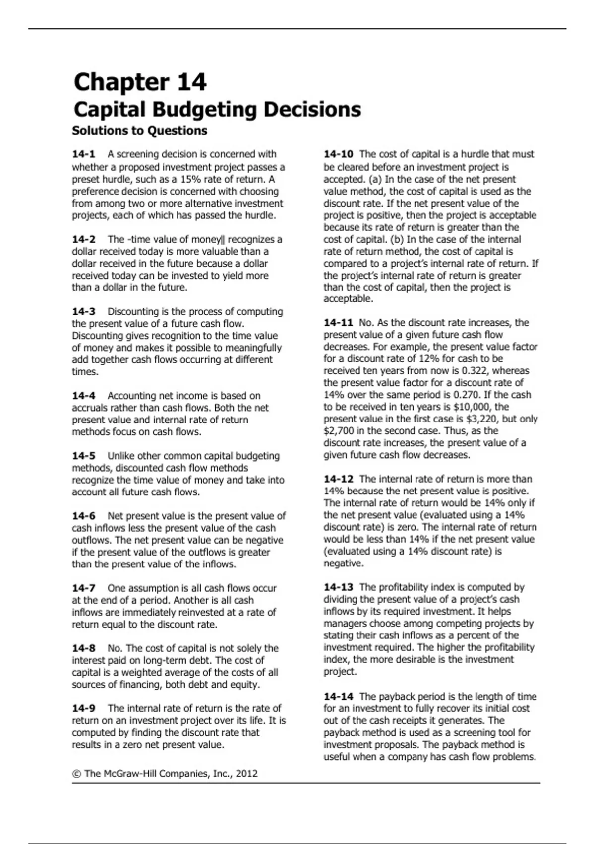 Managerial Accounting 18th Edition, Solutions Manual, Chapter 14