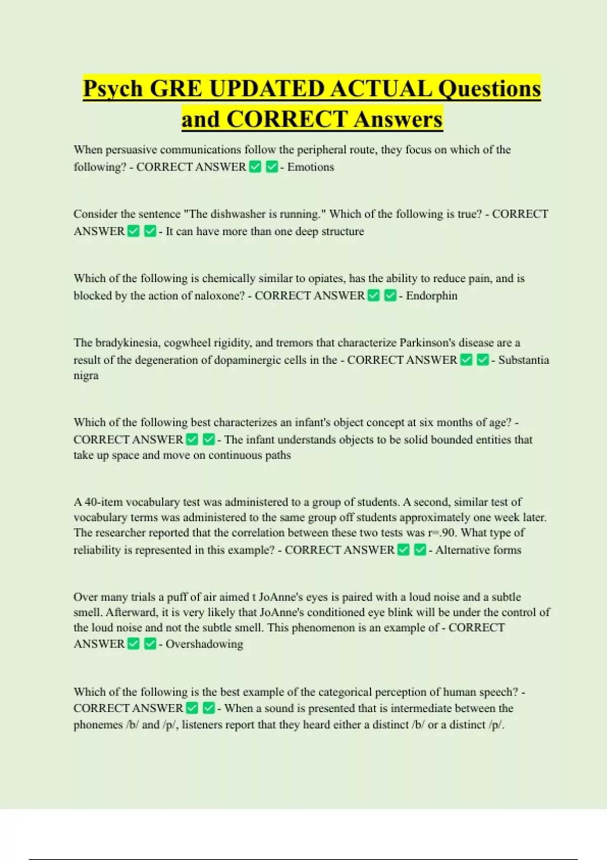 Psych GRE UPDATED ACTUAL Questions and CORRECT Answers