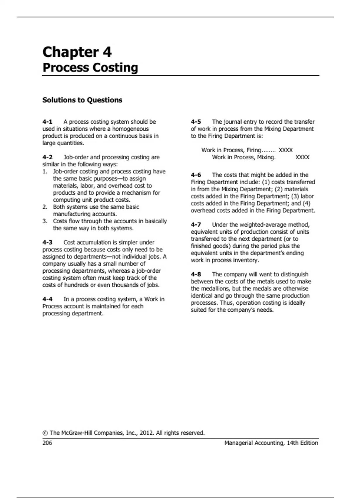 Managerial Accounting 18th Edition, Solutions Manual, Chapter 4