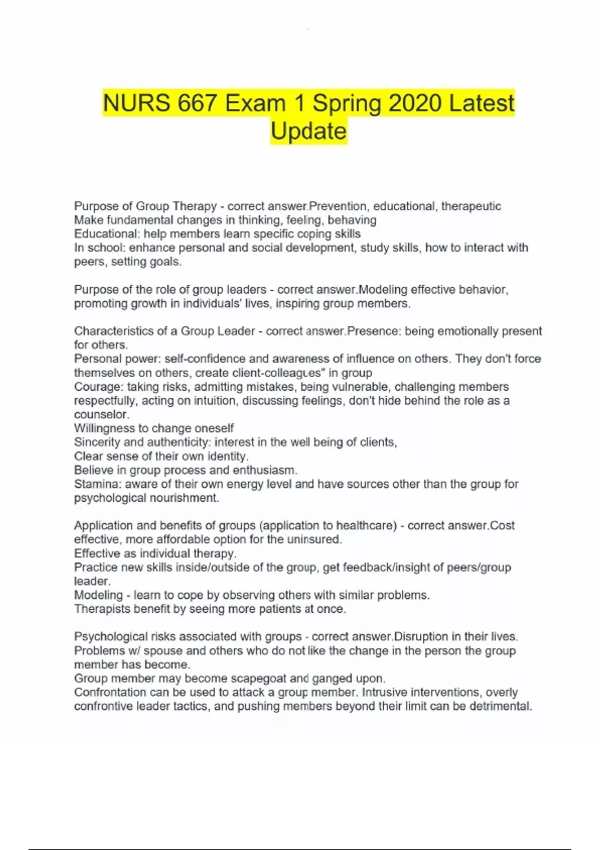 nurs 667 exam 1 spring 2020 latest update