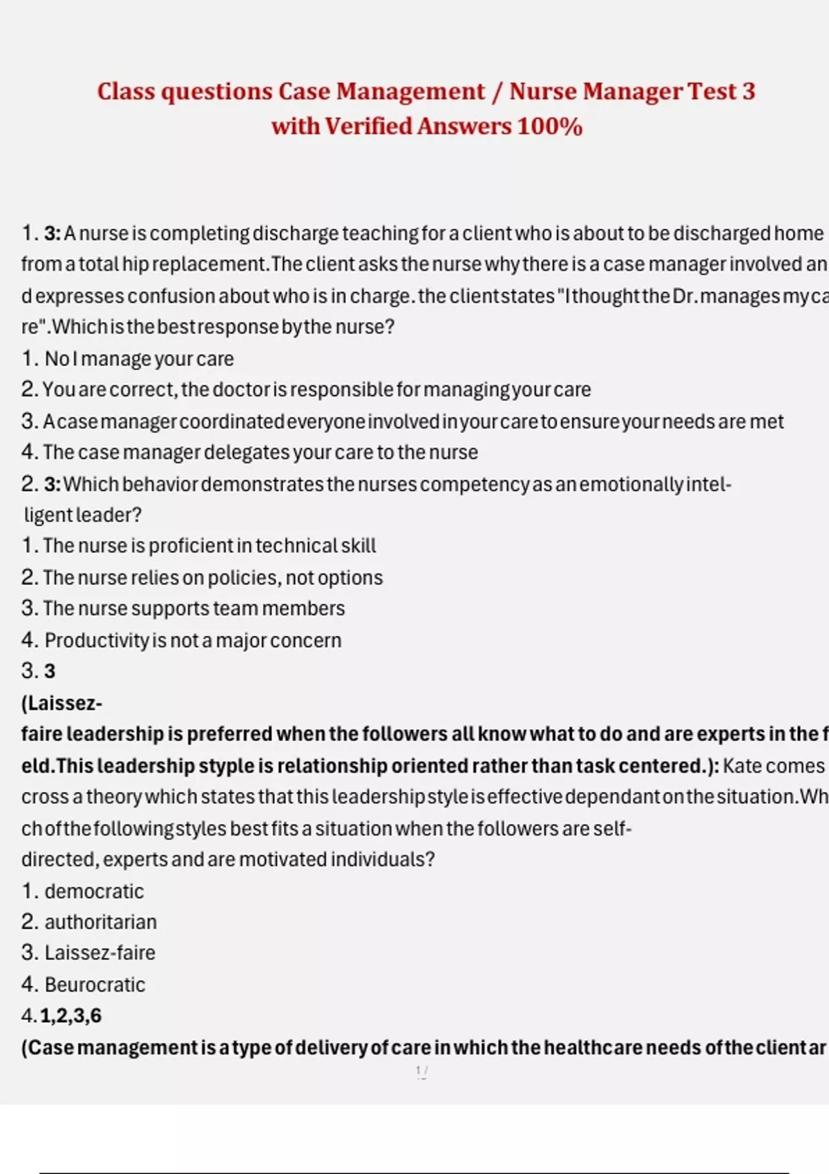 from a total hip replacement.The client asks the nurse why there is a case manager involved an