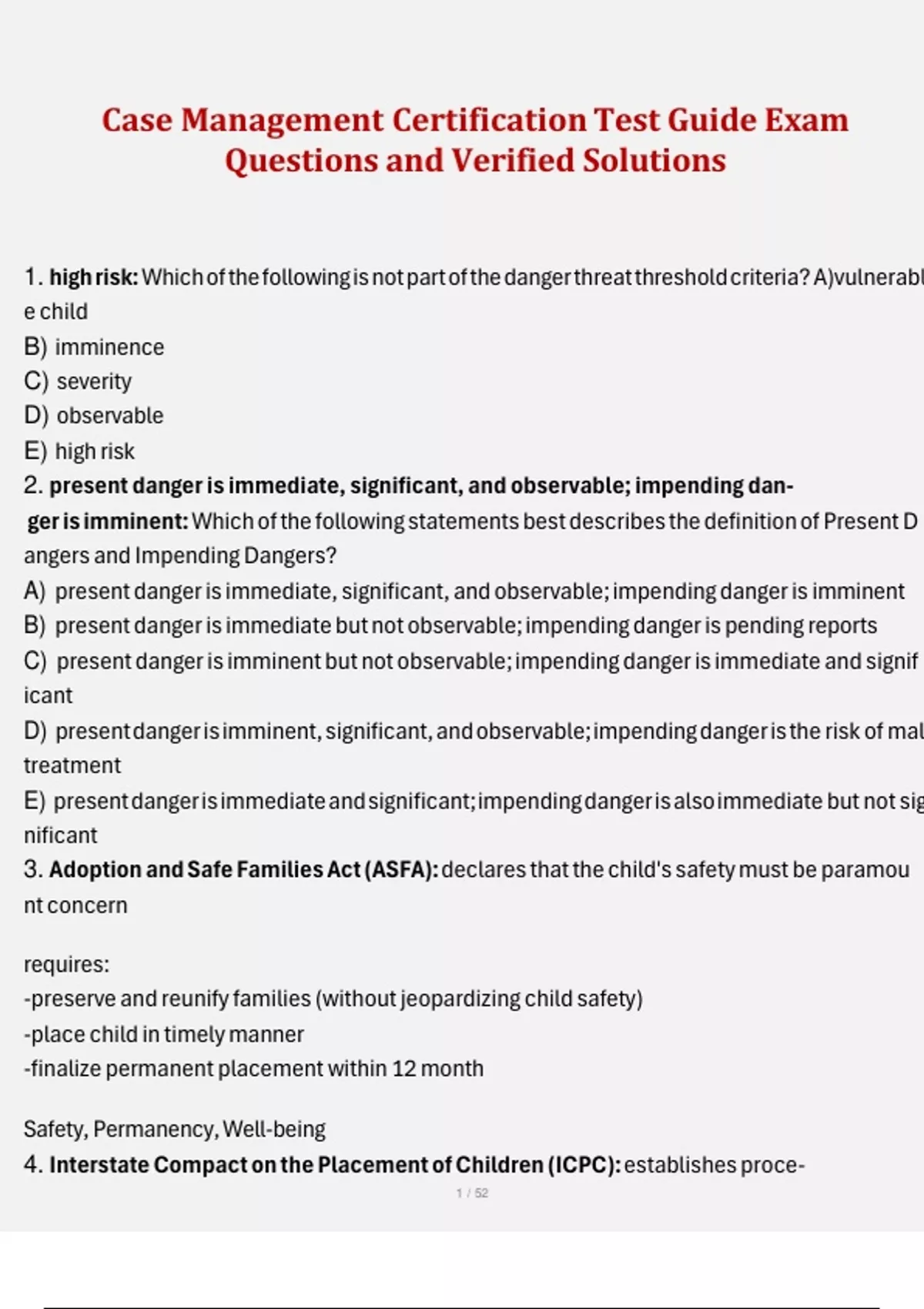 Case Management Certification Test Guide Exam Questions and Verified Solutions