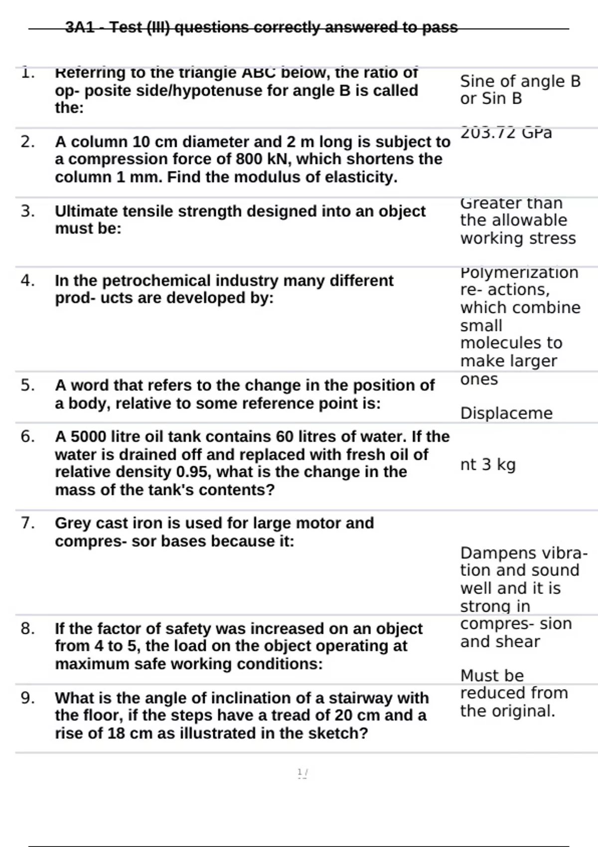 18. A sector has sides of 5 m and an angle of 36°. 2. Electrolyte