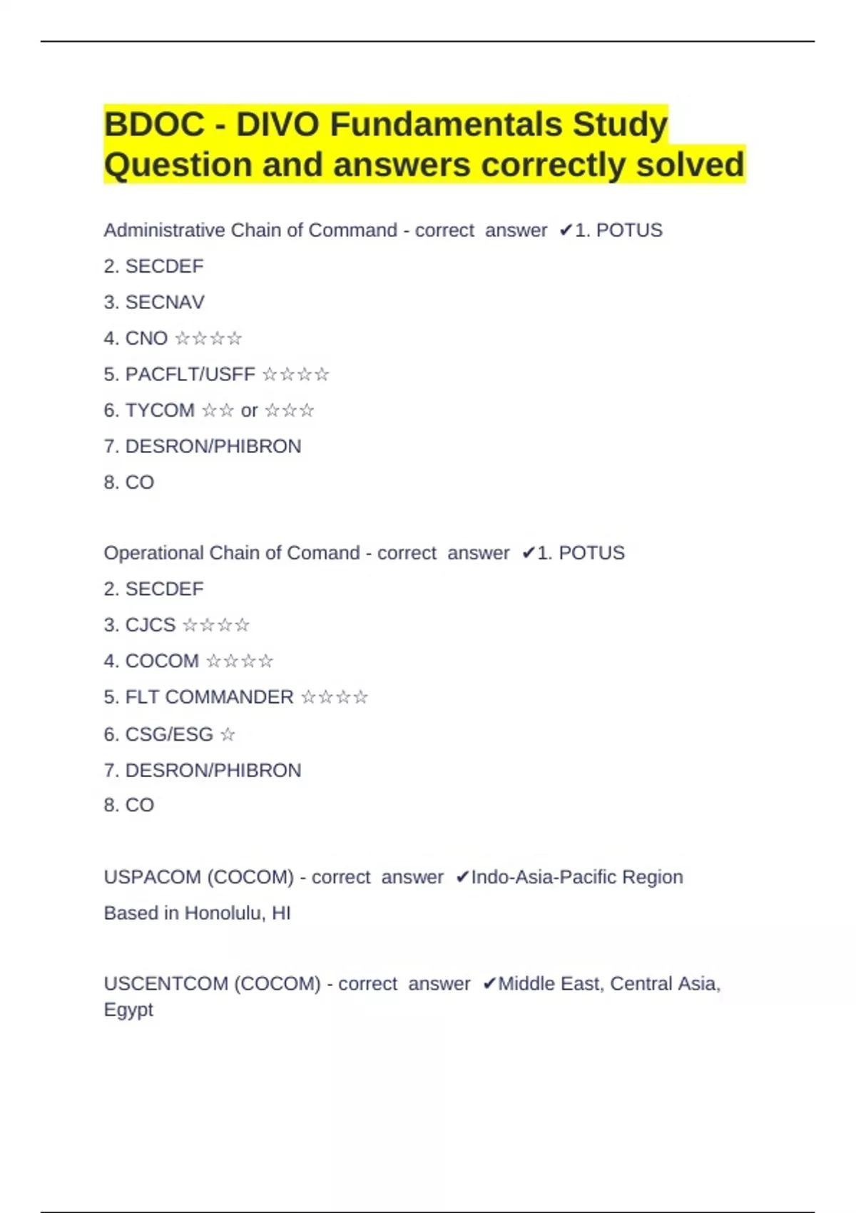 Operational Chain of Comand - correct answer ✔1. POTUS