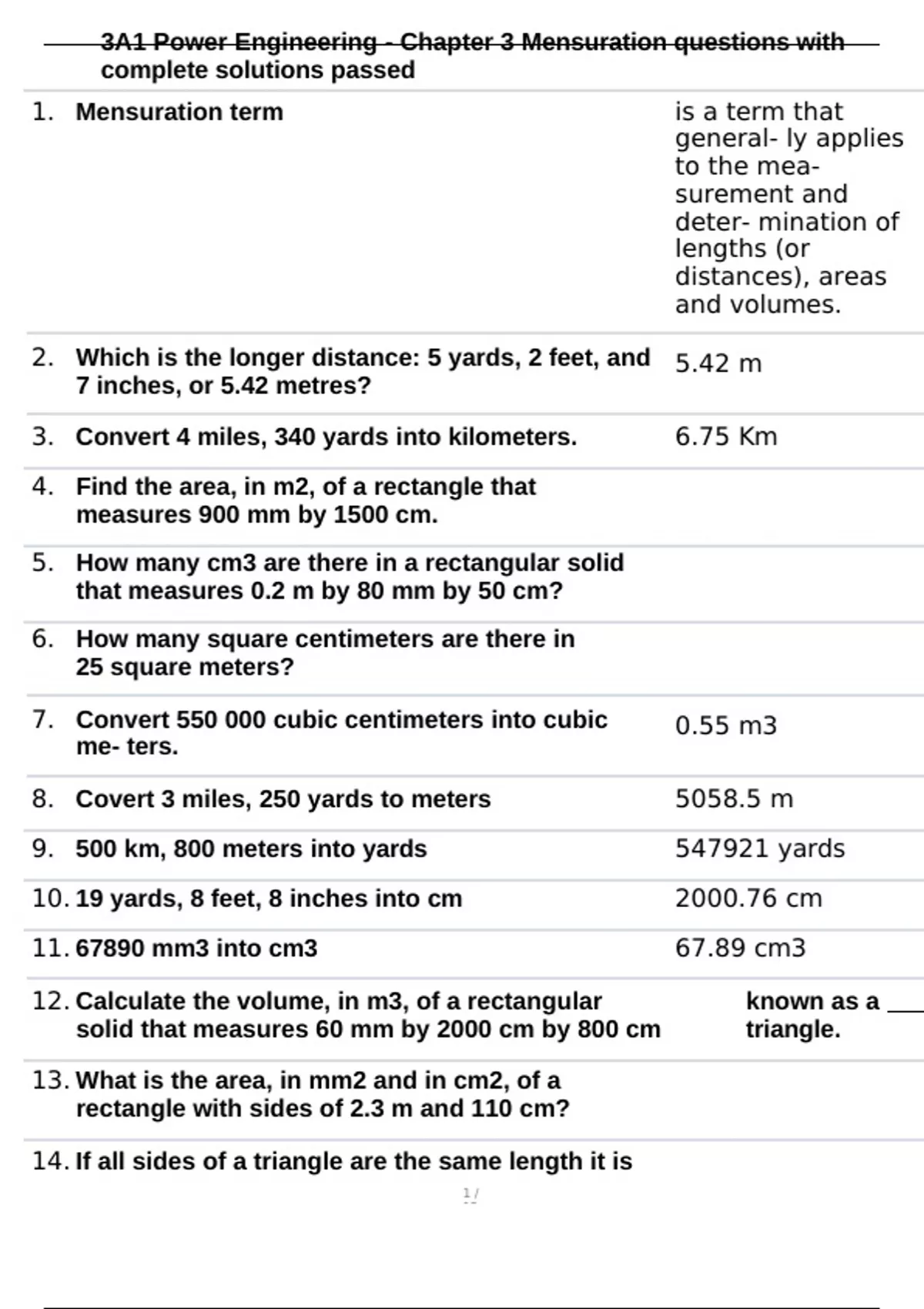 , 3A1 Power Engineering - Chapter 3 Mensuration questions with