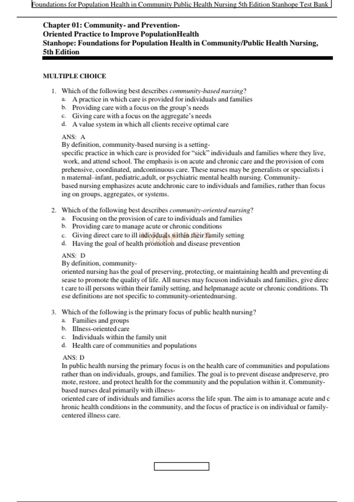 , FoundationshforhPopulationhHealthhinhCommunityhPublichHealthhNursingh5thhEditionhStanhopehTesthBank