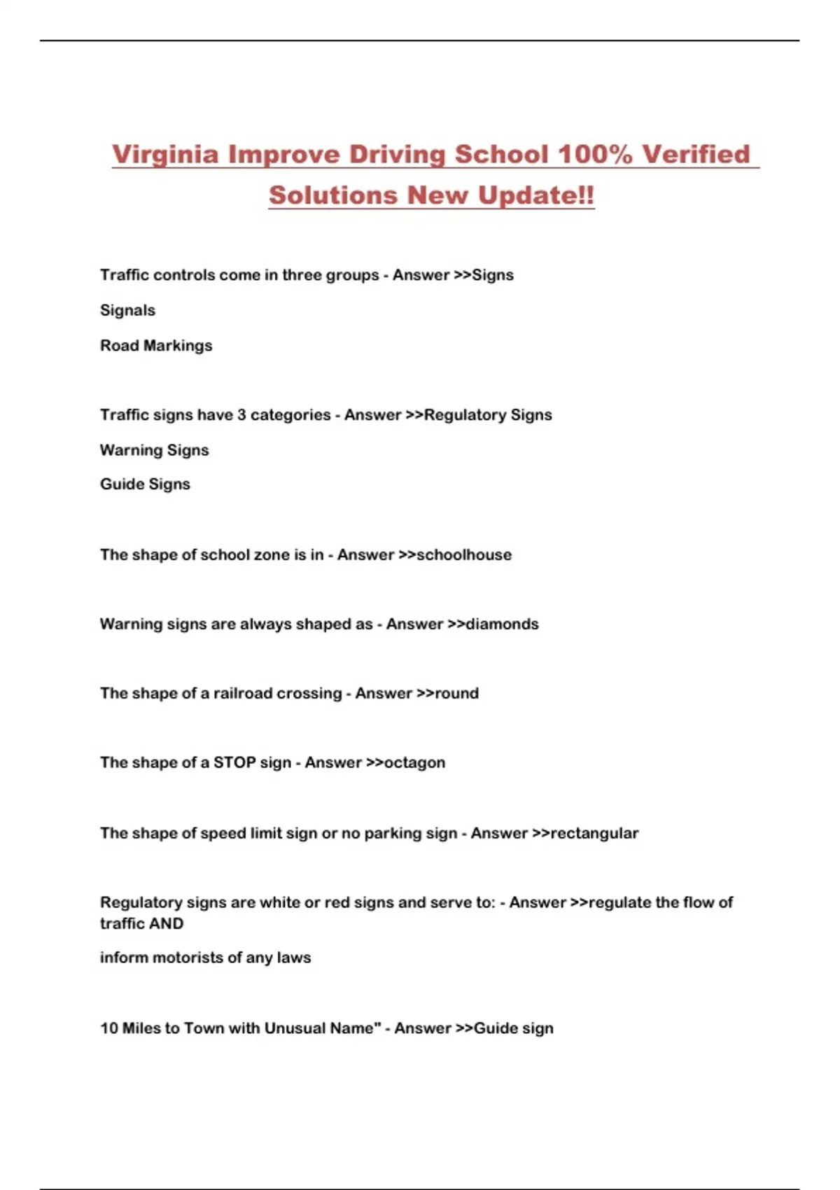 Traffic signs have 3 categories - Answer >>Regulatory Signs