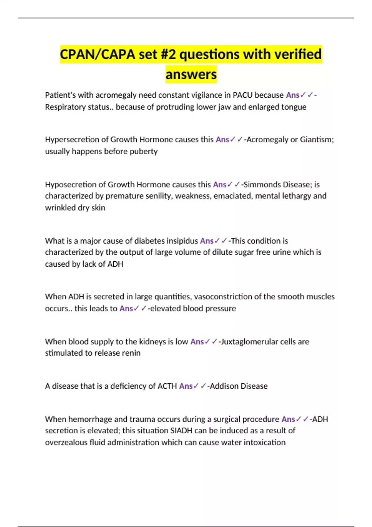 CPAN/CAPA set #2 questions with verified answers
