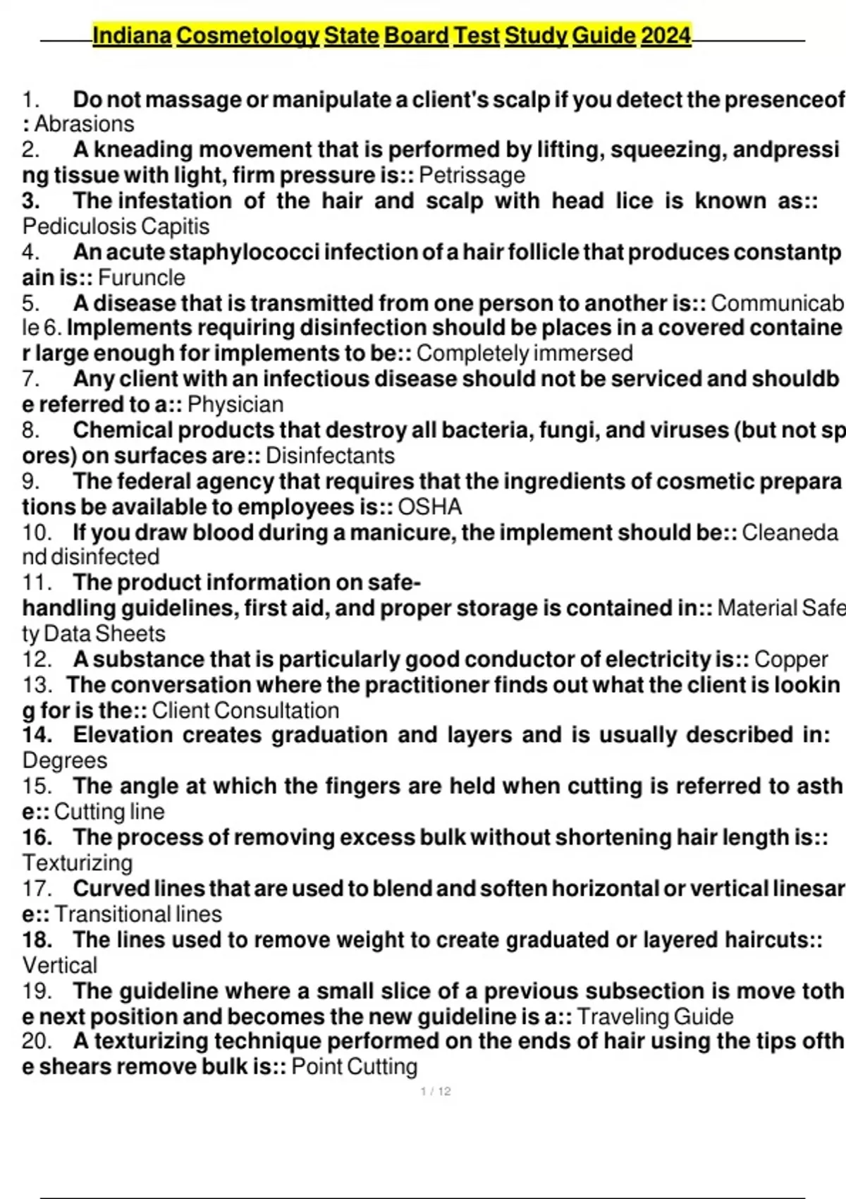 Indiana cosmetology state board test study guide with 100 correct answers latest 2024
