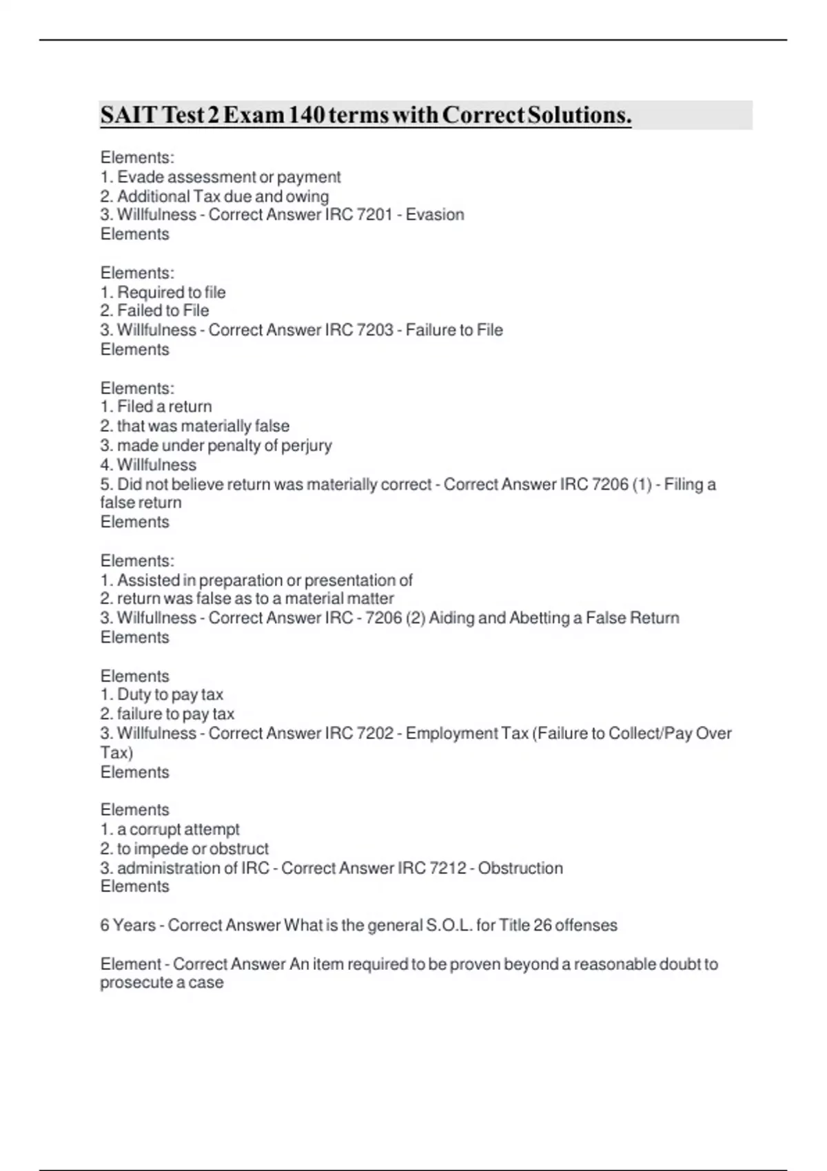 Tax Due and Owing - Correct Answer Key Element to IRC 7201
