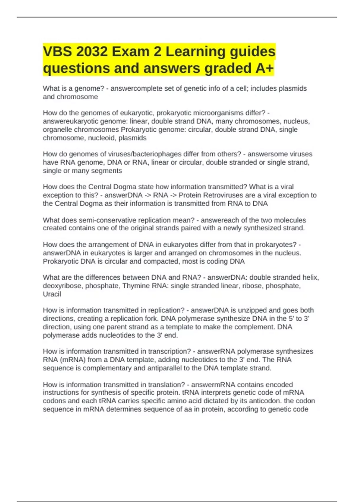 VBS 2032 Exam 2 Learning guides questions and answers graded A+