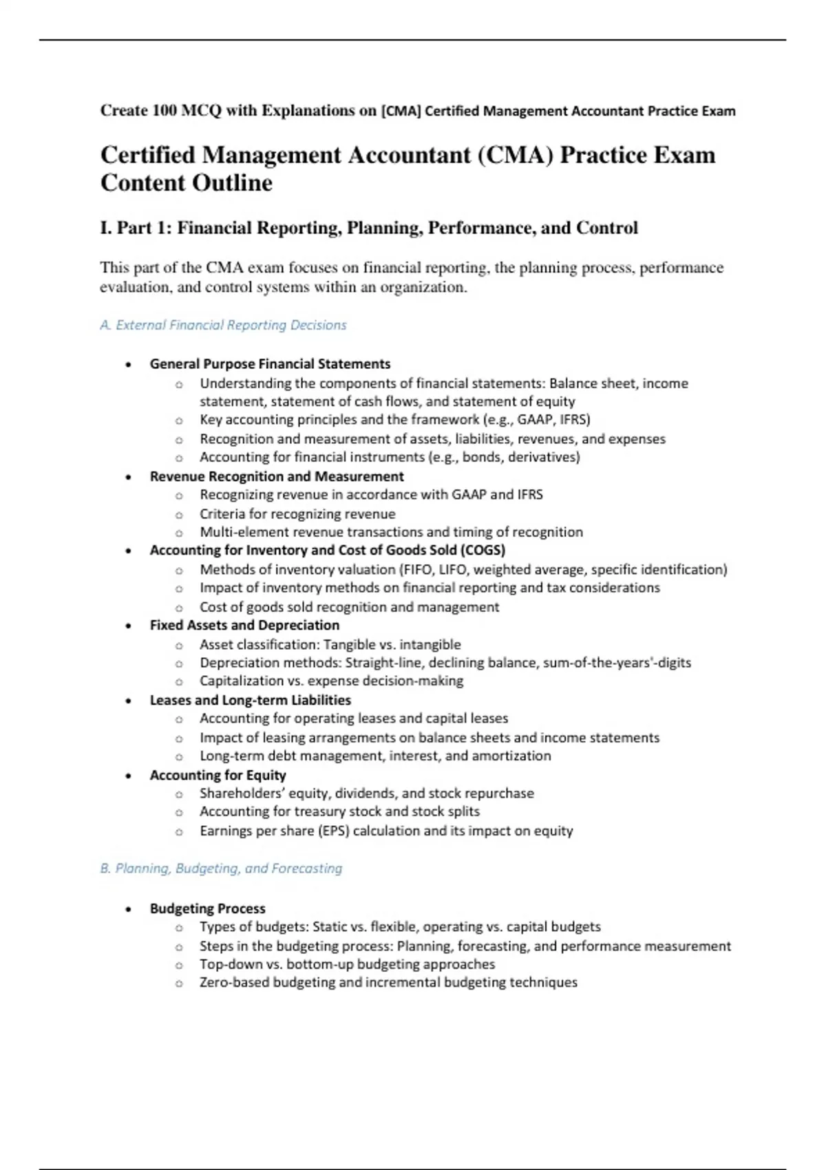 Certified Management Accountant (CMA) Practice Exam