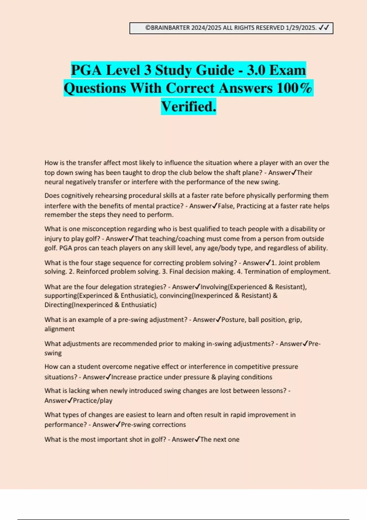 PGA Level 3 Study Guide - 3.0 Exam Questions With Correct Answers 100% Verified.