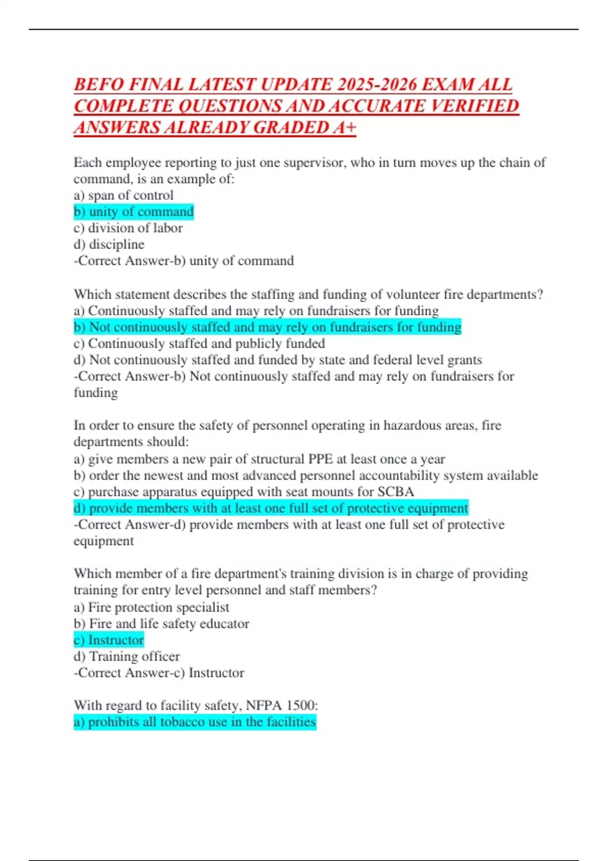 BEFO FINAL LATEST UPDATE 2025-2026 EXAM ALL