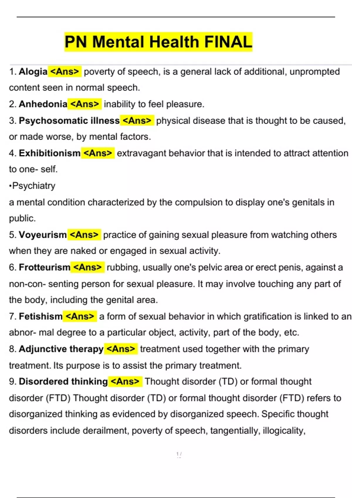9. Disordered thinking <Ans> Thought disorder (TD) or formal thought