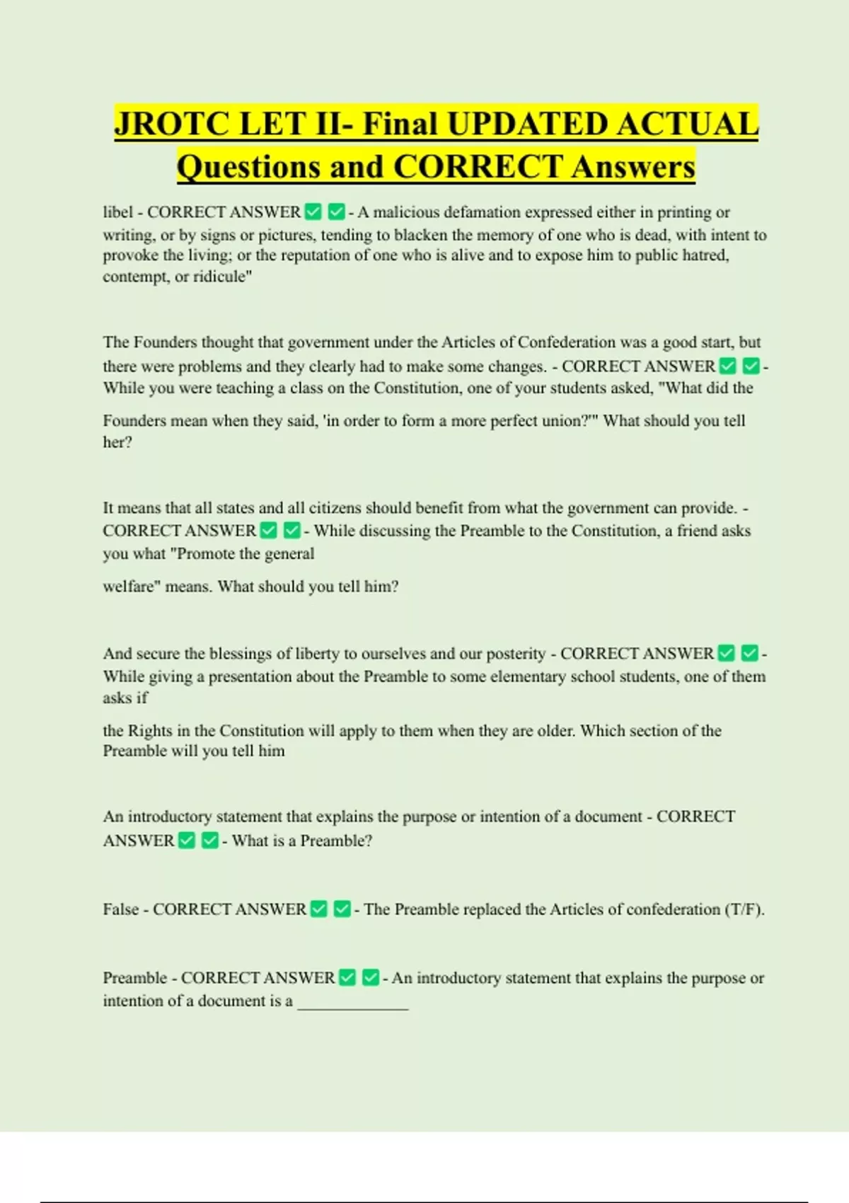 CORRECT ANSWER - While discussing the Preamble to the Constitution, a friend asks