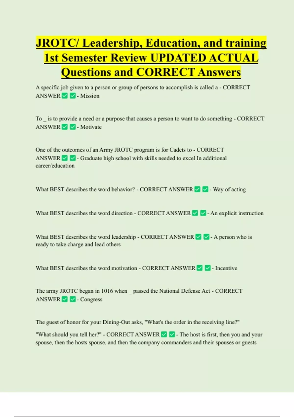 Questions and CORRECT Answers