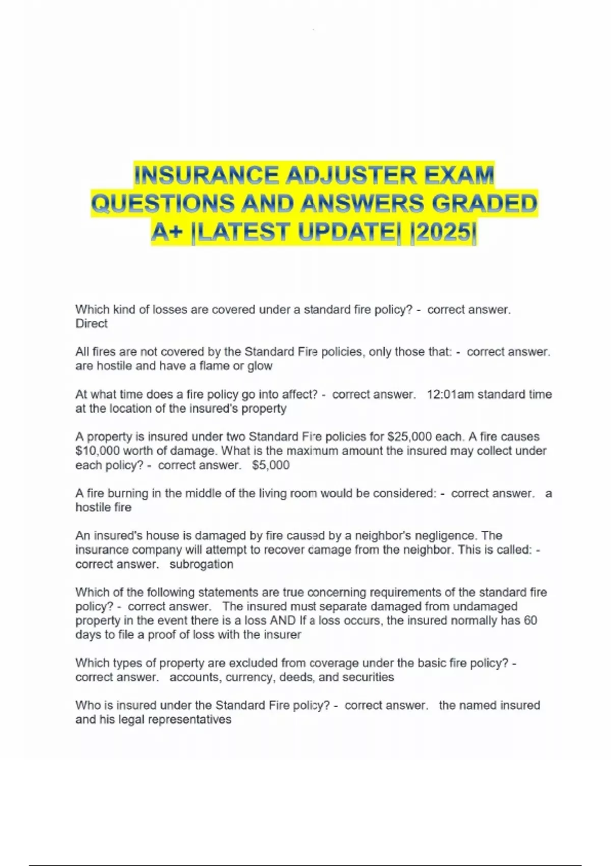 INSURANCE ADJUSTER EXAM QUESTIONS AND ANSWERS GRADED A+ |LATEST UPDATE| |2025|INSURANCE ADJUSTER EXAM QUESTIONS AND ANSWERS GRADED A+ |LATEST UPDATE| |2025|INSURANCE ADJUSTER EXAM QUESTIONS AND ANSWERS GRADED A+ |LATEST UPDATE| |2025|INSURANCE ADJUSTER EXAM QUESTIONS AND ANSWERS GRADED A+ |LATEST UPDATE| |2025|INSURANCE ADJUSTER EXAM QUESTIONS AND ANSWERS GRADED A+ |LATEST UPDATE| |2025|