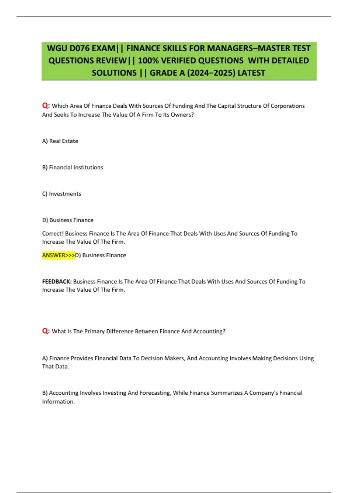 Q: Which Subspecialty Of Finance Primarily Involves Deciding Which Assets Will Create More Wealth