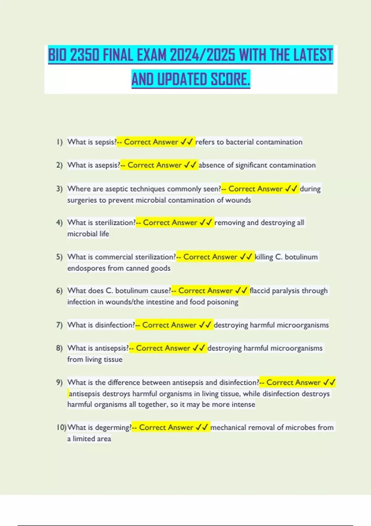 BIO 2350 FINAL EXAM 2024/2025 WITH THE LATEST