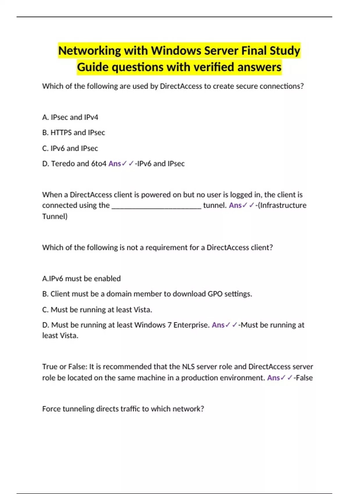 D. DirectAccess Ans✓✓-DirectAccess