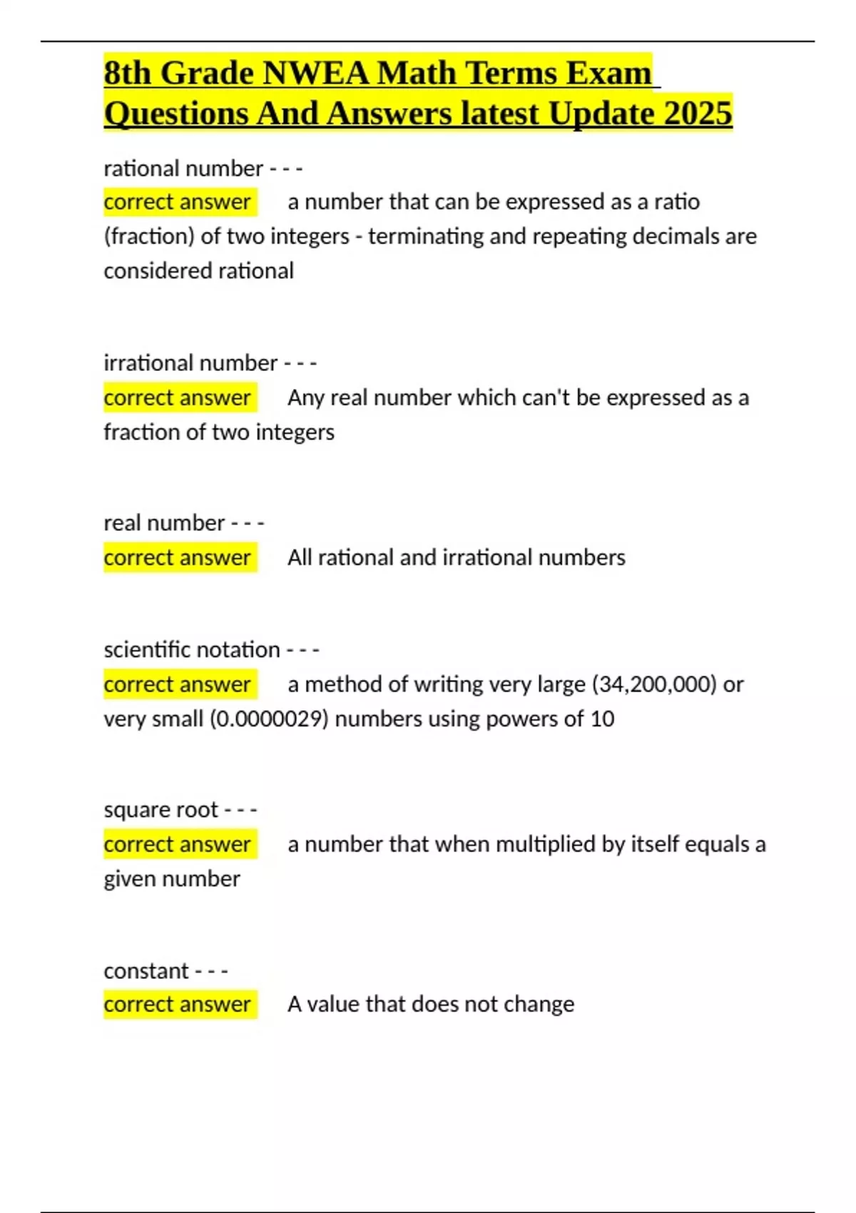 8th Grade NWEA Math Terms Exam Questions And Answers latest Update 2025.docx