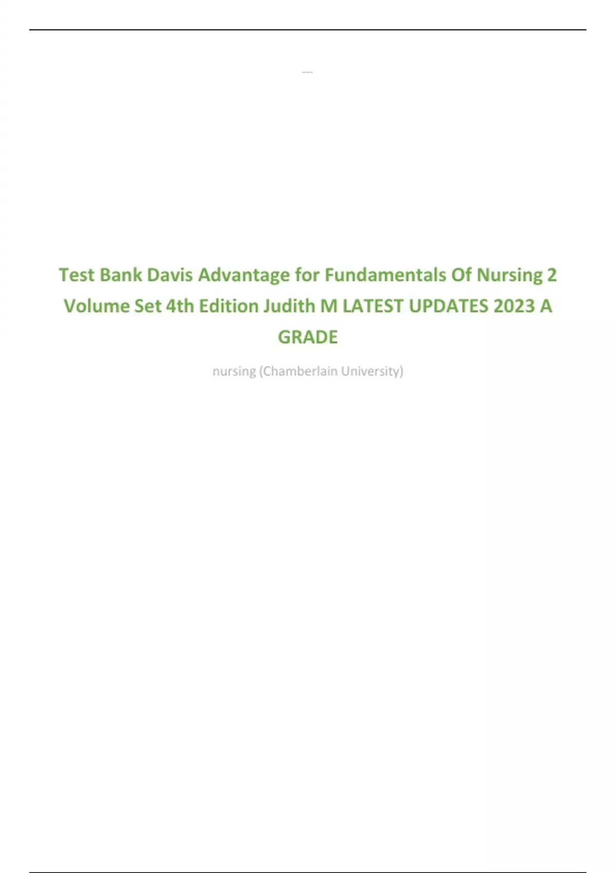Test Bank Davis Advantage for Fundamentals Of Nursing 2