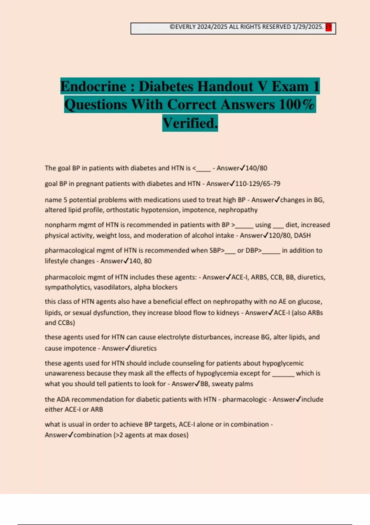 The goal BP in patients with diabetes and HTN is <____ - Answer✔140/80