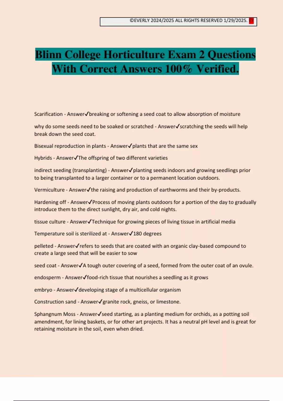 Temperature soil is sterilized at - Answer✔180 degrees