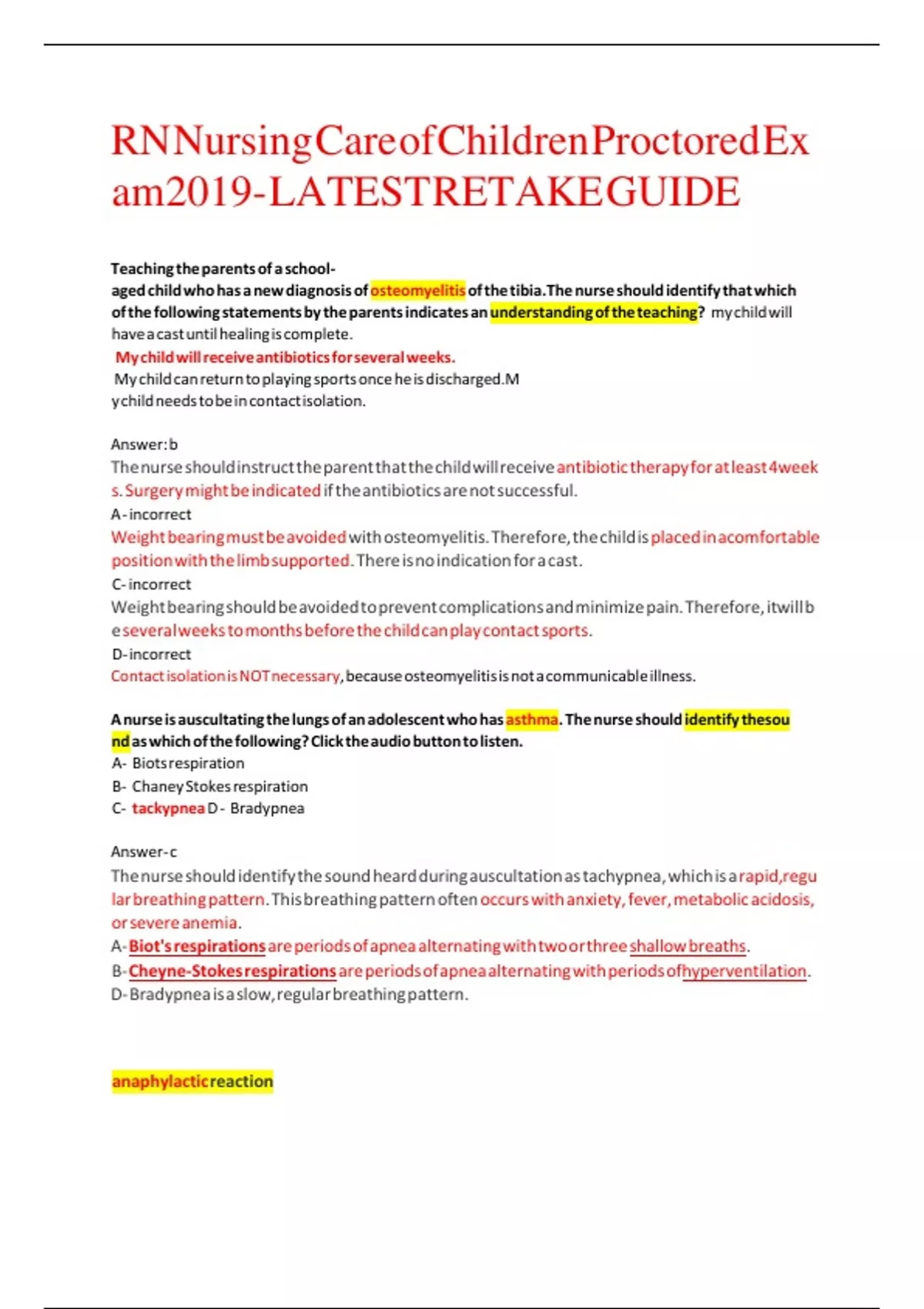 RN Nursing Care of Children Proctored Ex