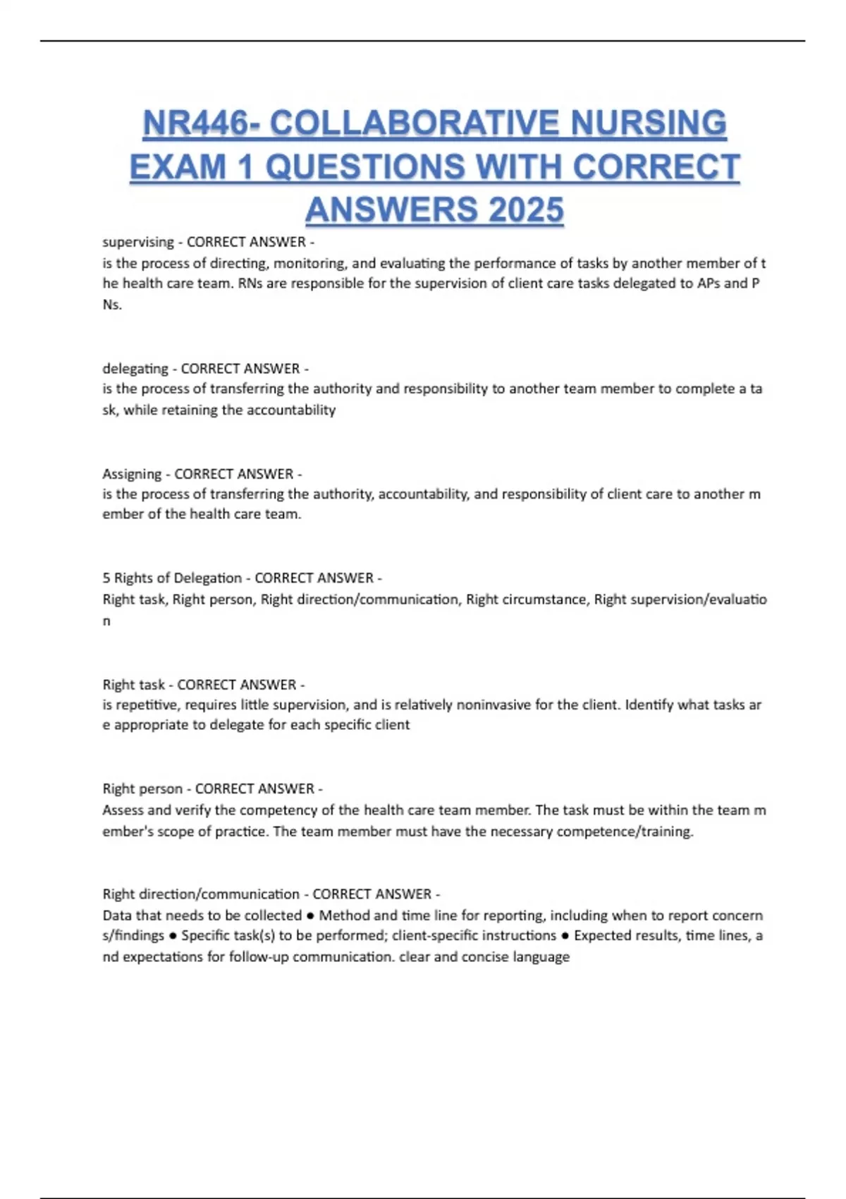 NR446- COLLABORATIVE NURSING EXAM 1 QUESTIONS WITH CORRECT ANSWERS 2025